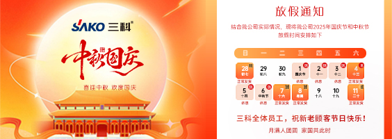 秋高氣爽,雙節(jié)同輝。值此中秋團(tuán)圓與國慶歡慶之際,SAKO三科全體員工提前祝您節(jié)日快樂,闔家幸福,萬事如意!